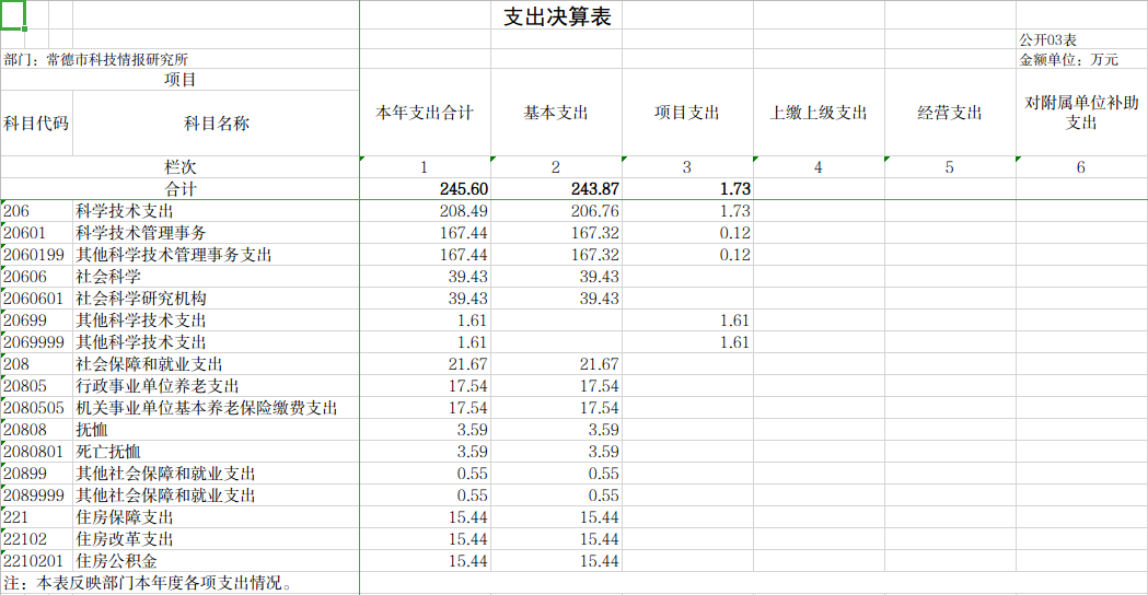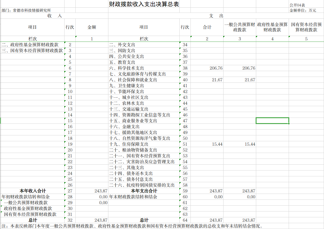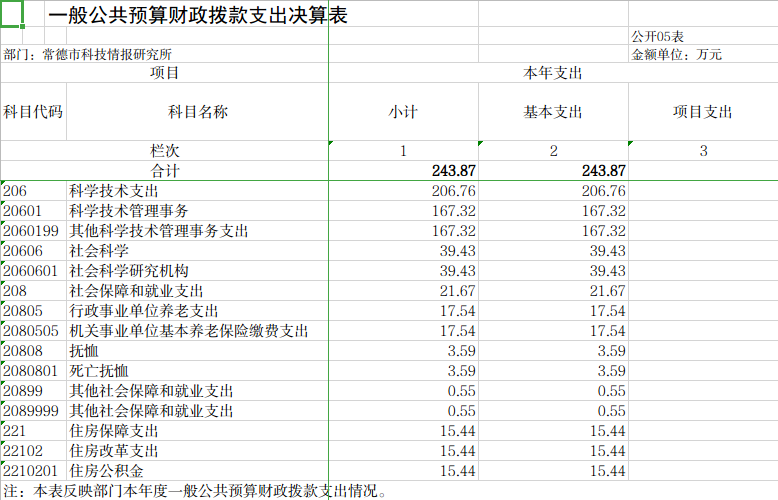 2024年度一般公共预算财政拨款支出243.87万元,主要用于以下方面:科学技术支出206.76万元,占84.78%;社会保障和就业支出21.67万元,占8.89%;住房保障支出15.44万元,占6.33%。