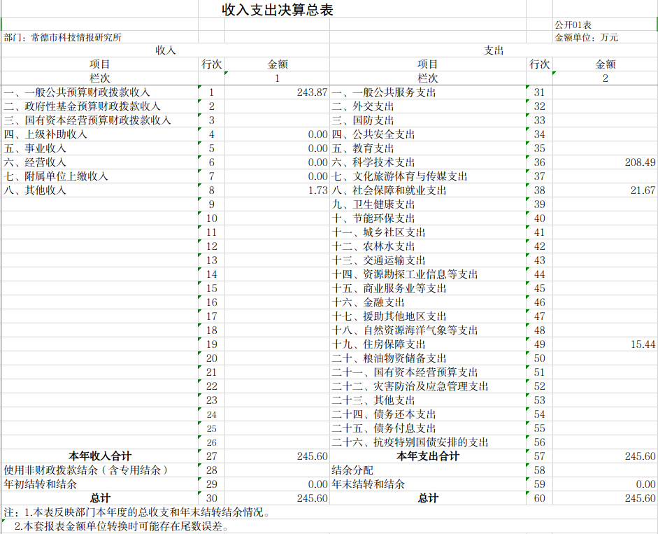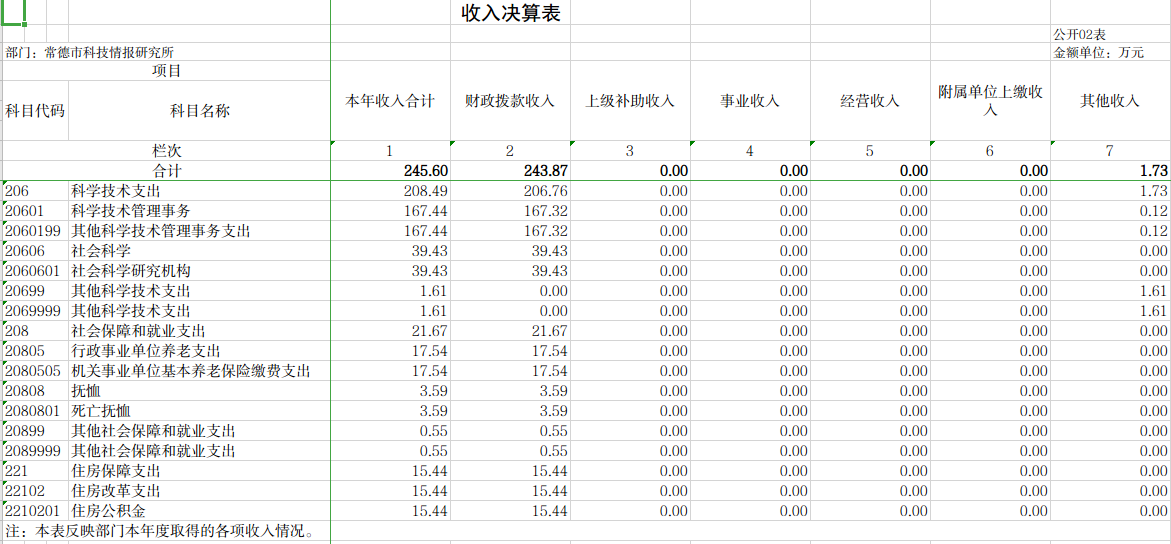 2024年度收入合计245.6万元,其中:财政拨款收入243.87万元,占99.30%;上级补助收入0万元,占0%;事业收入0万元,占XX%;经营收入0万元,占0%;附属单位上缴收入0万元,占0%;其他收入1.73万元,占0.7%。