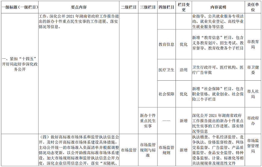 赌博平台落实《湖南省2021年政务公开工作要点》责任分解表